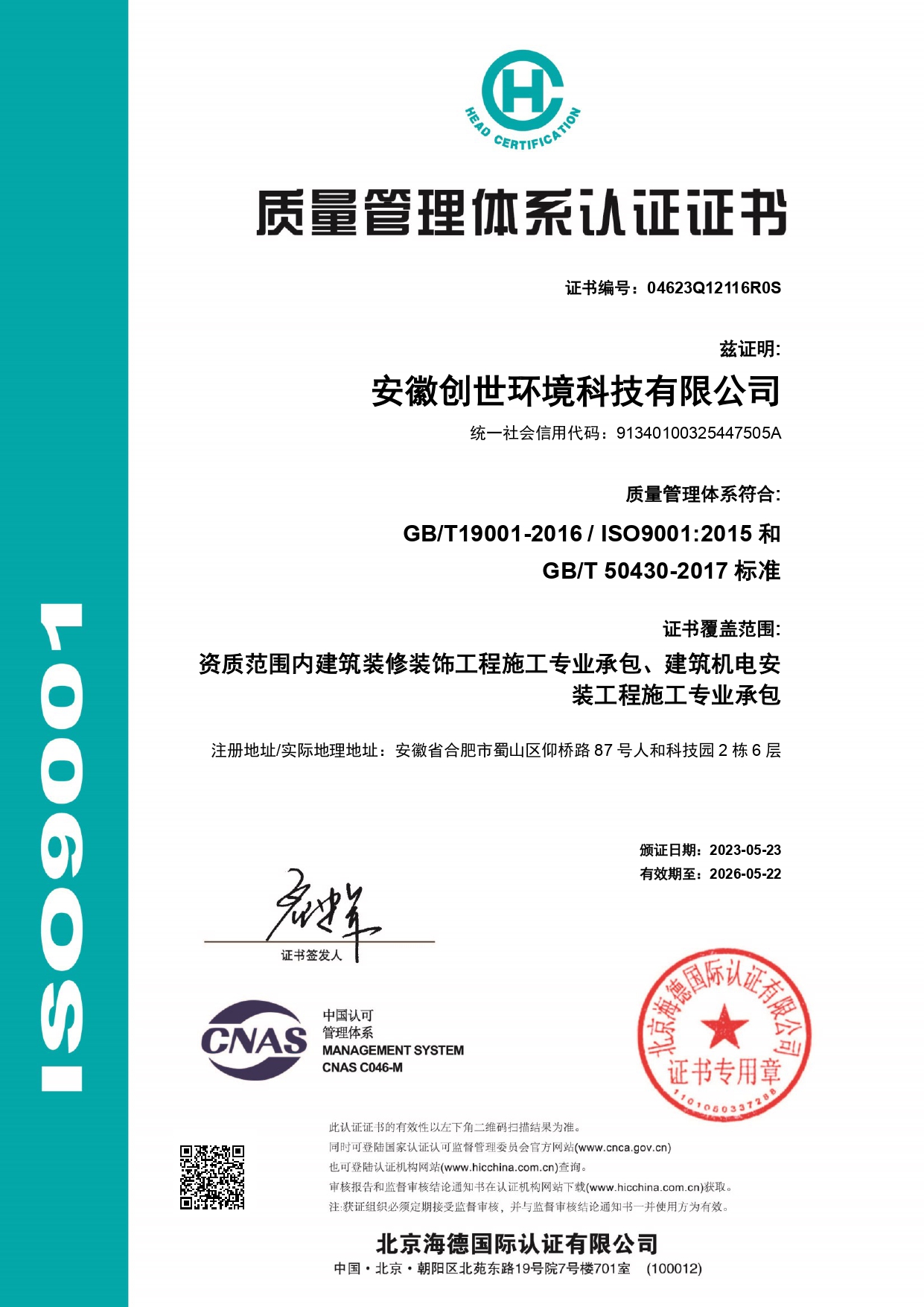 質量管理體系認證證書