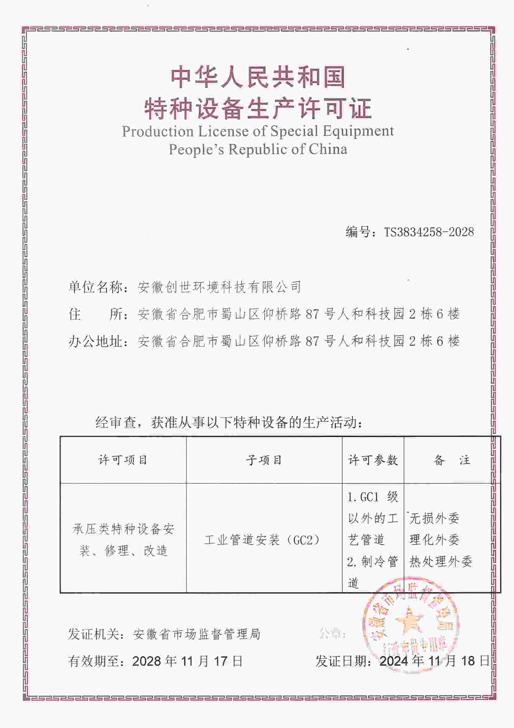特種設備生產許可證